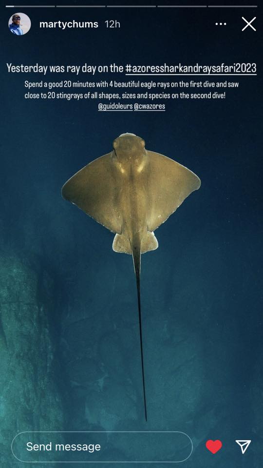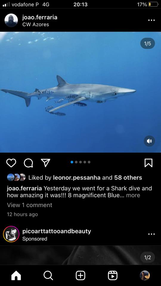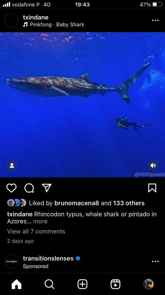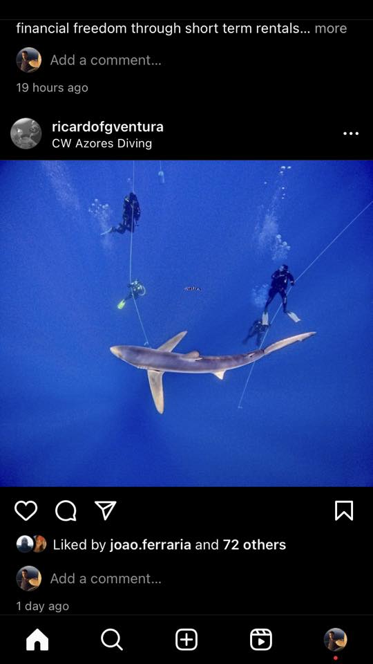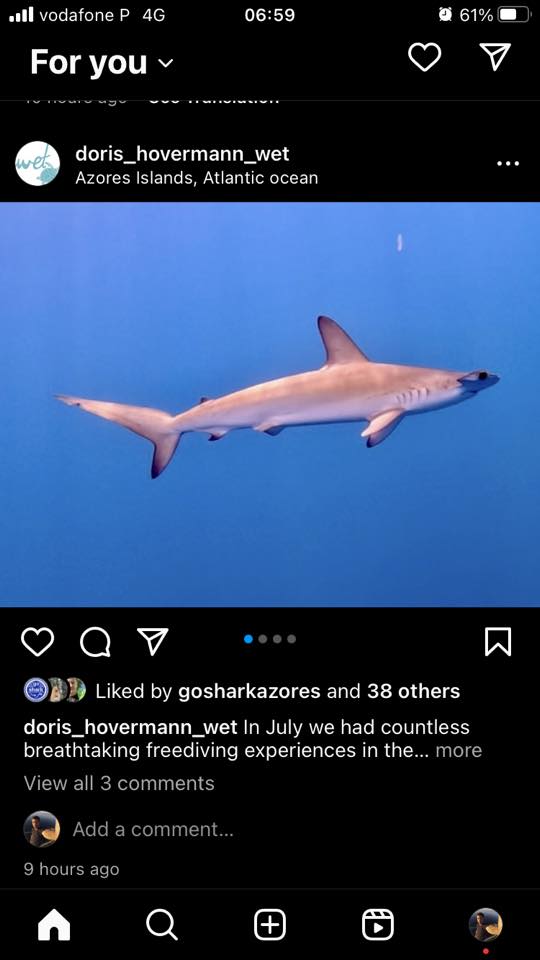 Find bellow images related to the presence of elasmobranchs registered in the Azores by divers and marine tourists.